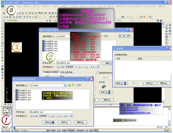 亂刀CAD去教育版戳適用于2004~2014,非常好用。有32和64位兩種版本CAD,之前找過一些其他的,效果不甚理想,本人WIN7 64bit Auto CAD2008用32位版完美去除教育版本(P