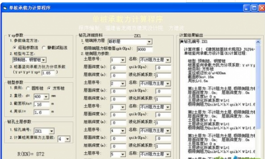 很實用的單樁承載力計算程序,樁基的東西好好研究研究還是很有必要的。真需要啊,鋼管樁要打啊 鉆孔編號:ZK1 計算依據:《建筑樁基技術規范》JGJ94-94和本項目巖土工程勘察報告 單